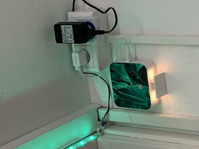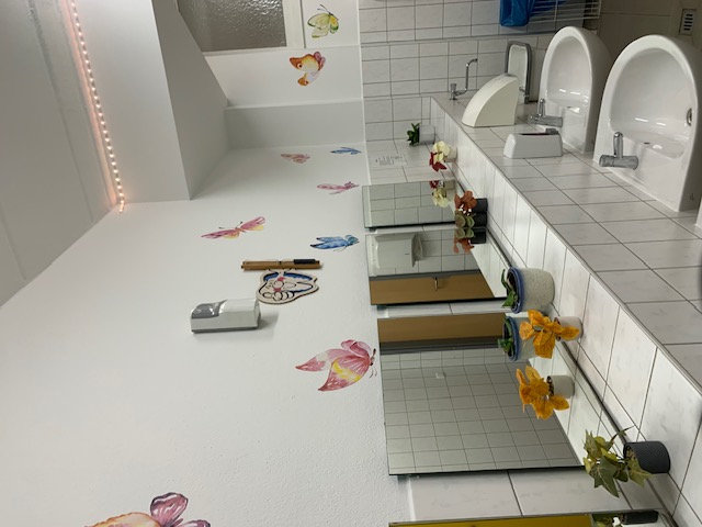 Zuerst tauchten wie von Wunderhand kleine Pflanzen und Duftbehälter auf. Danach wurden die Wände verziert, ein Wichtel brachte LED Licht an, welches bunt wechselt und der Höhepunkt: eine Geräuschbox macht fröhliche Waldgeräusche. Wenn man mucksmäuschenstill stehen kann und der Bewegungsmelder das helle Licht ausgehen lässt, dann kann man alles auf sich wirken lassen.