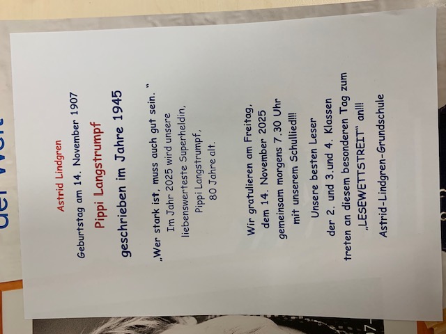 Anlässlich des 80. Geburtstag von Pippi am 14. November 2025 findet unser LESEWETTSTREIT statt.